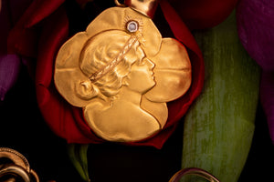 Art Nouveau 14k Gold Locket set with Rubies and Diamonds