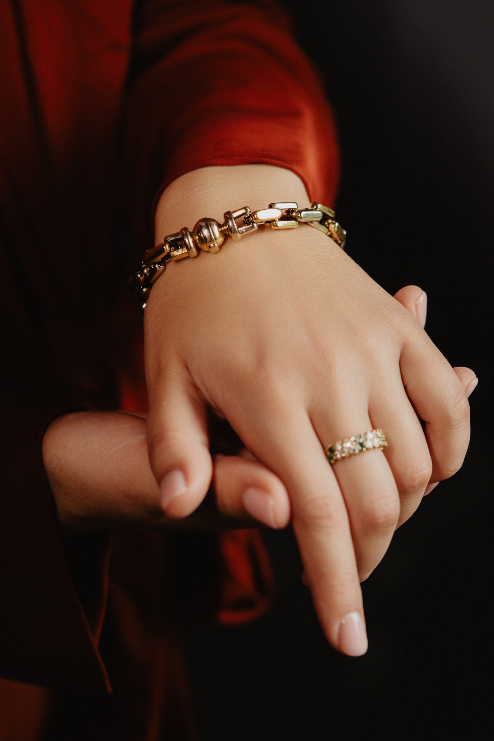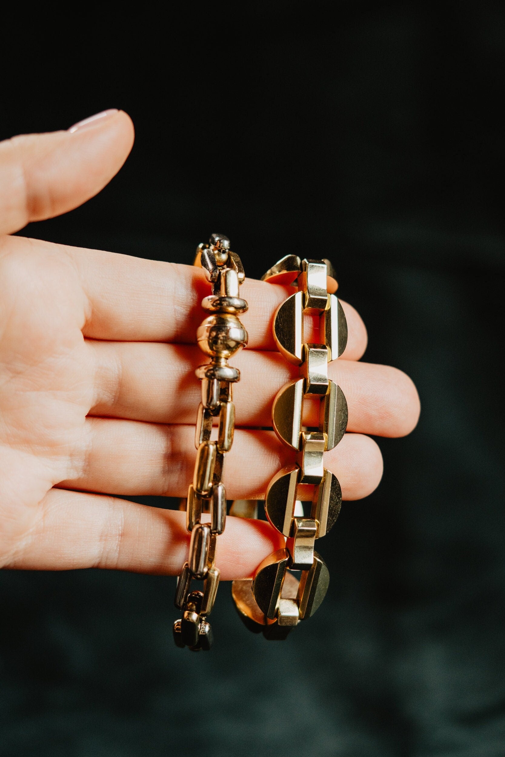 This vintage brutalist chain link bracelet is more than an accessory; it's an invitation to embrace your unique style and make a statement. Perfect for adding a touch of vintage flair to any outfit, it's a must-have for those who appreciate bold, playful, and collectible pieces.